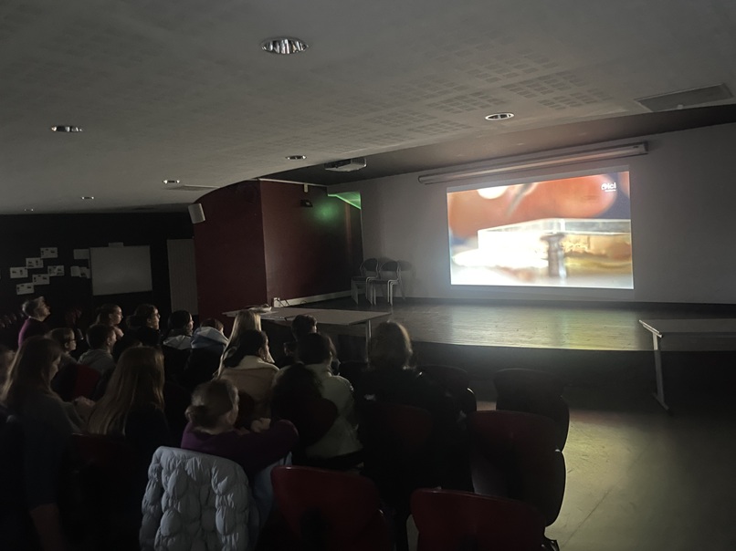 Gilles a accueilli les élèves et leur a présenté le film documentaire "Dans les gouffres à fossiles du Quercy" qui explique le travail des chercheurs, depuis le prélèvement des fossiles dans les gouffres jusqu'aux résultats obtenus.