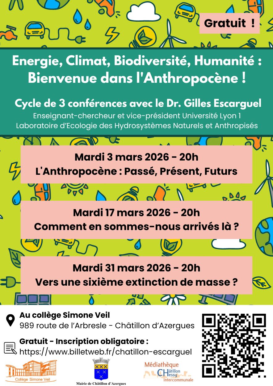 Ces conférences sont gratuites. Réservation obligatoire : https://www.billetweb.fr/chatillon-escarguel